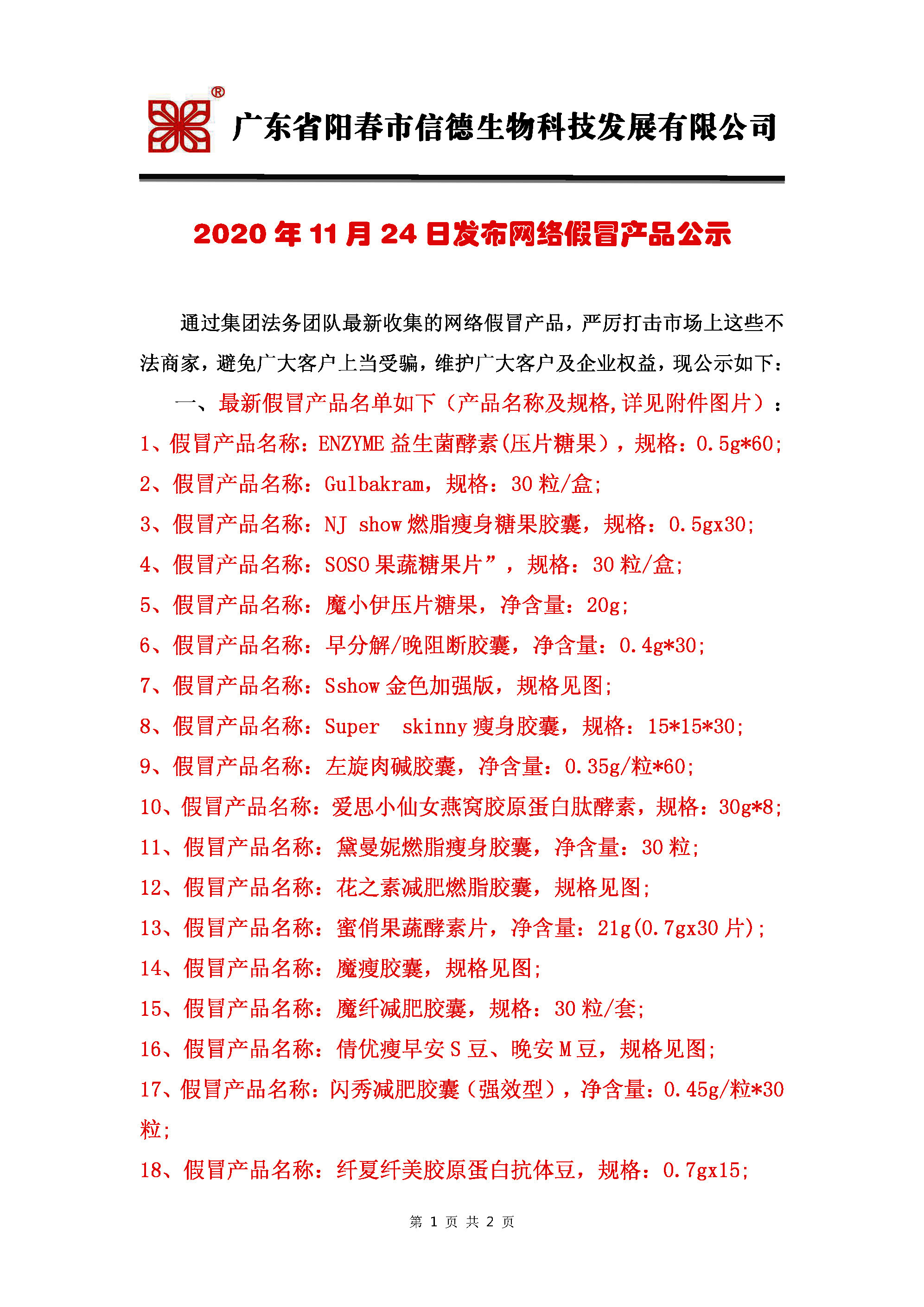 2020年11月24日廣東信德集團發布網絡假冒產品公示!!!