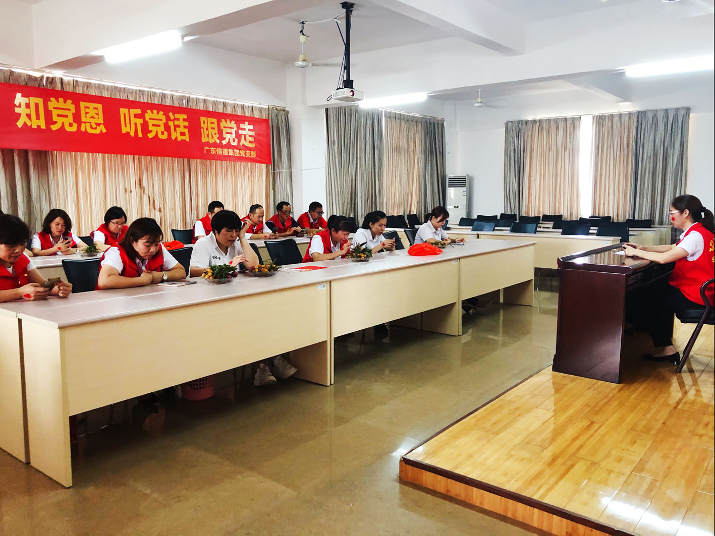 6月26日下午,廣東信德集團在行政大樓5樓培訓室召開慶祝中國共產黨成立100周年暨“學黨史、知黨恩、聽黨話、跟黨走”專題黨課,共同緬懷黨的奮鬥曆程,重溫黨的光榮曆史,回顧黨的豐功偉績,弘揚黨的優良傳統,表彰一批先進典型,進一步堅定信念、凝聚力量、激發鬥誌,振奮精神,推動集團各項事業取得新突破、再上新台階、開創新局麵。