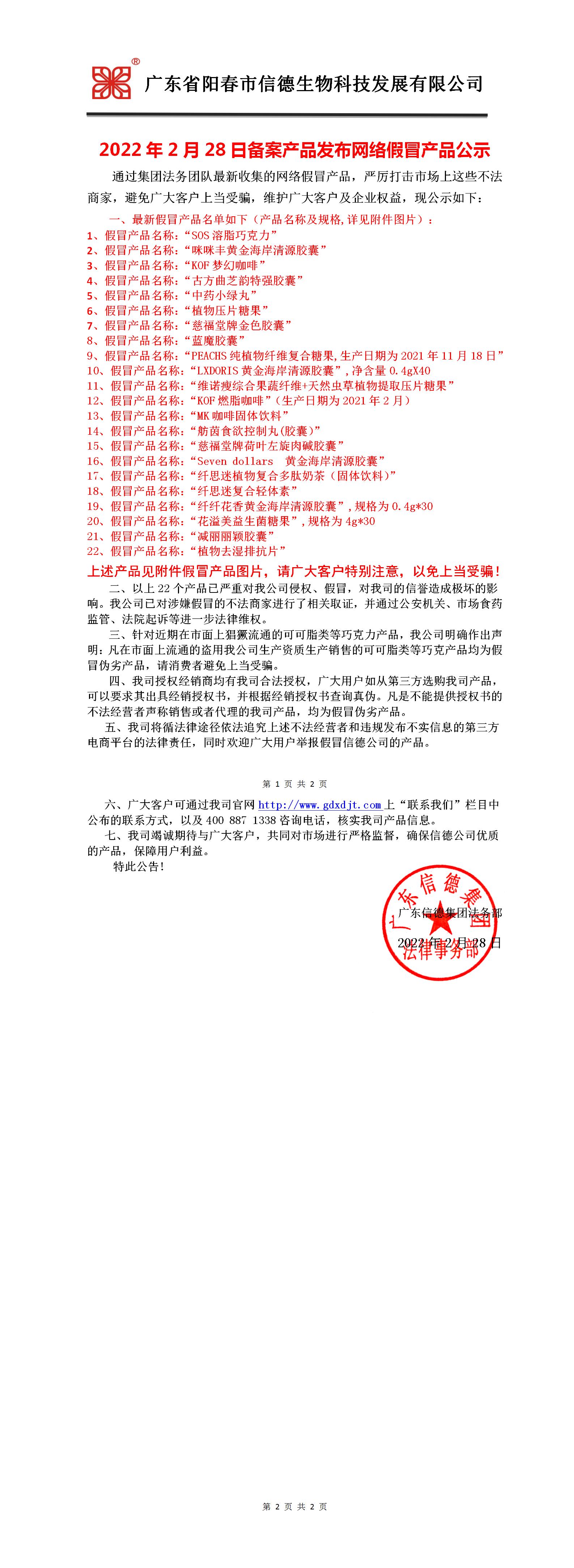 2022年2月28日備案產品發布網絡假冒產品公示!!!