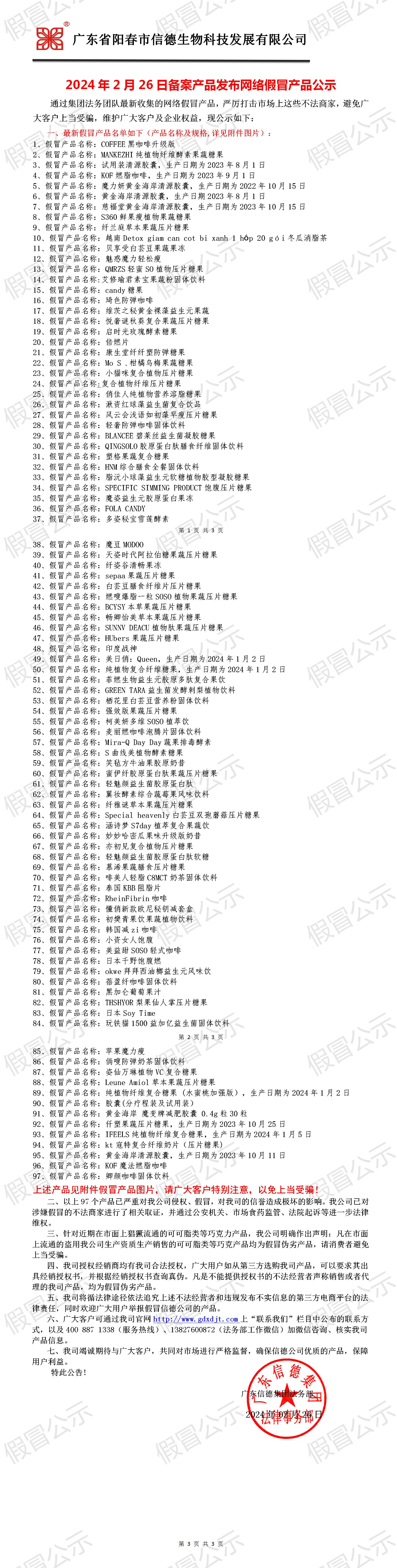 2024年2月26日備案產品發布網絡假冒產品公示!!!