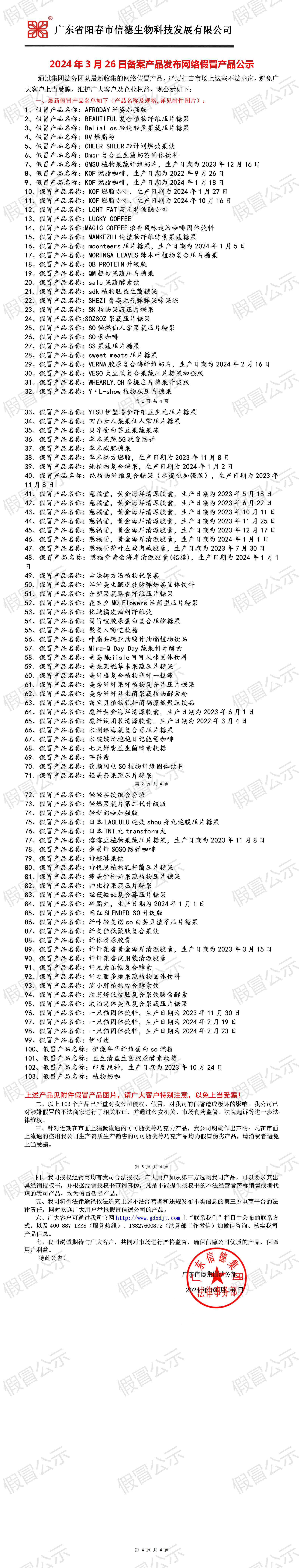 2024年3月26日備案產品發布網絡假冒產品公示!!!