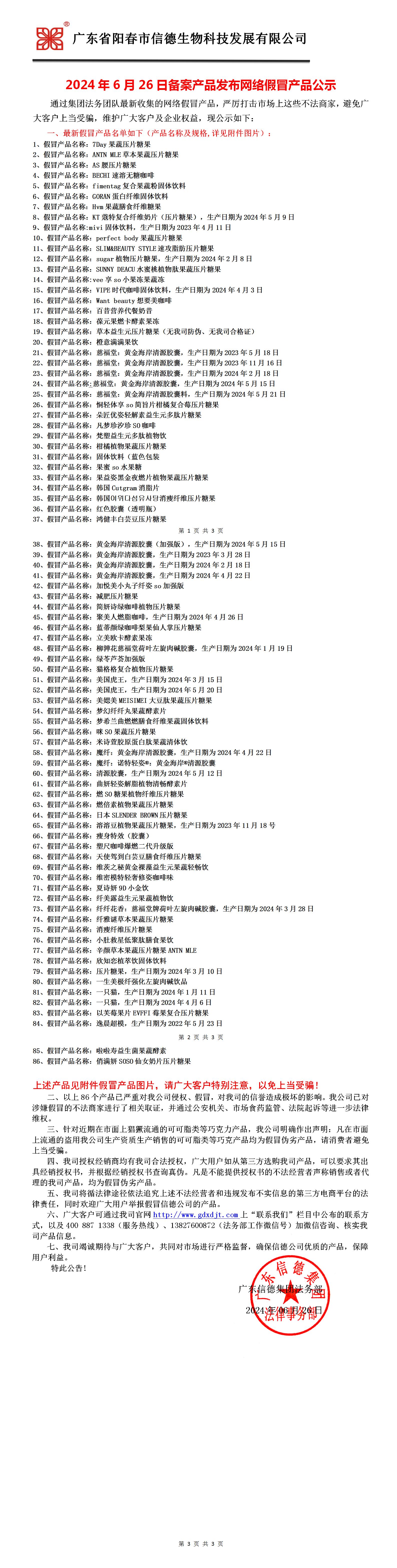 2024年6月26日備案產品發布網絡假冒產品公示!!!