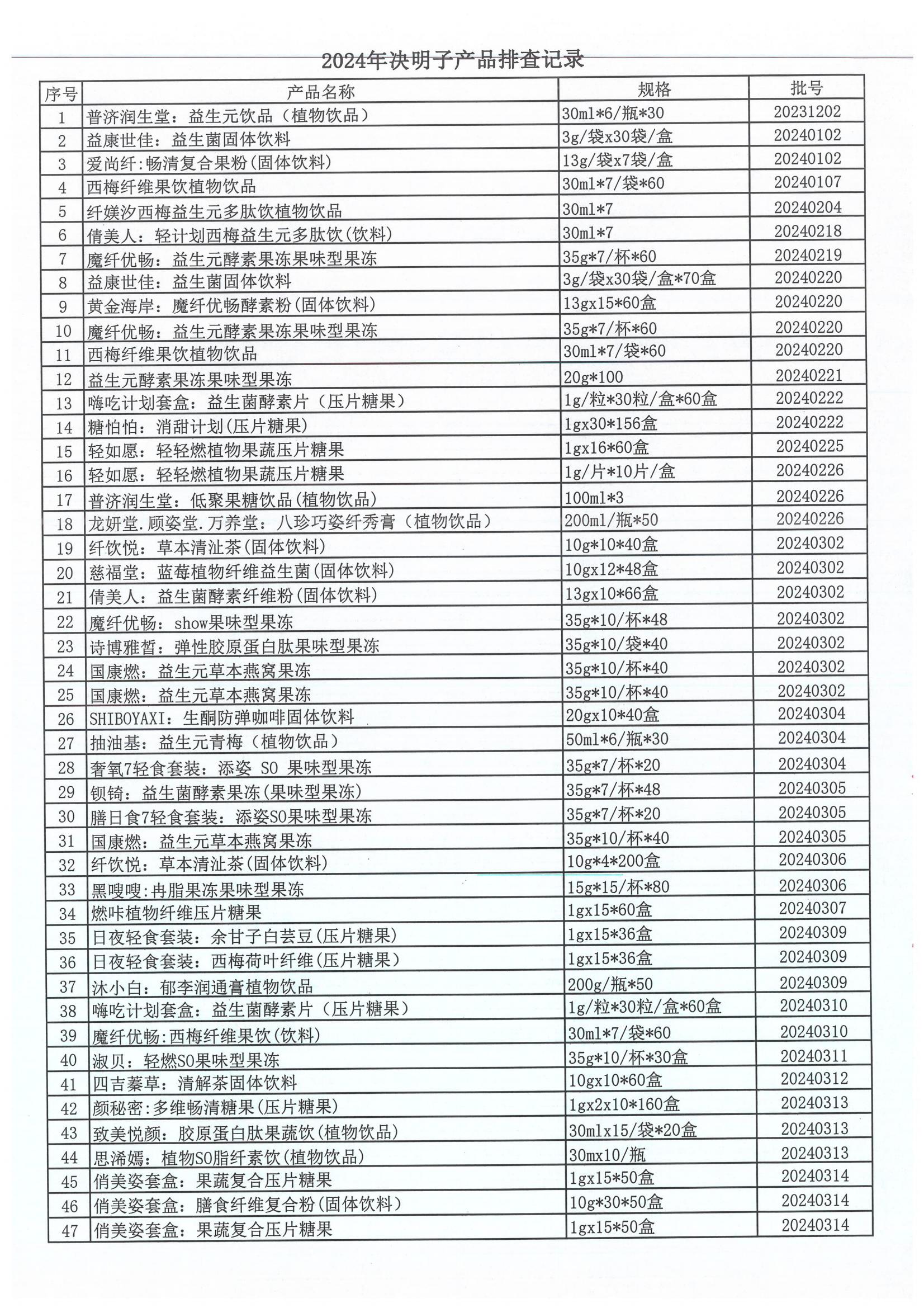 決明子類產品召回公告