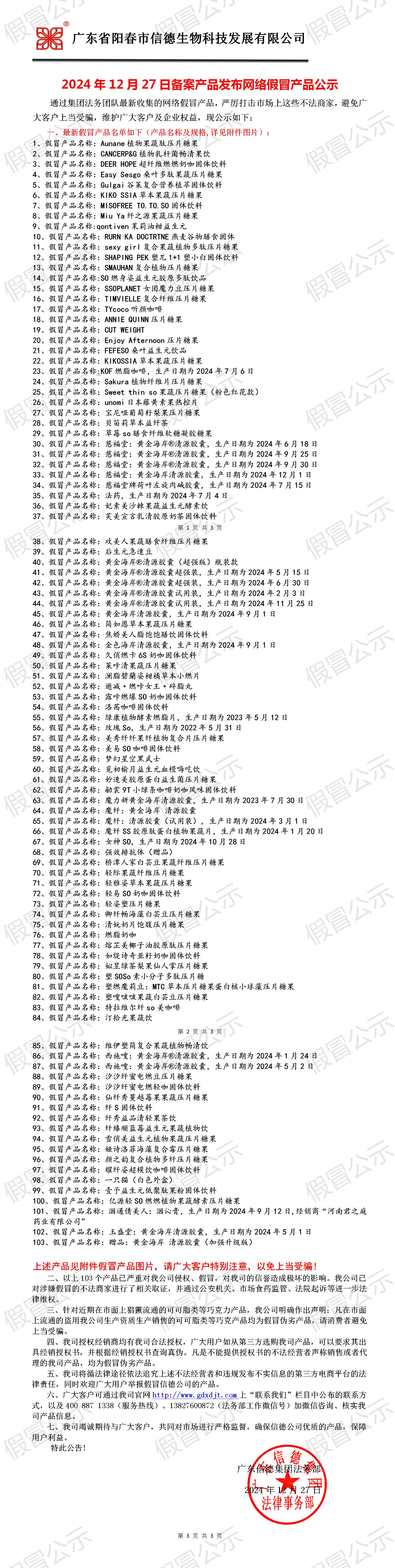 2024年12月27日備案產品發布網絡假冒產品公示!!!