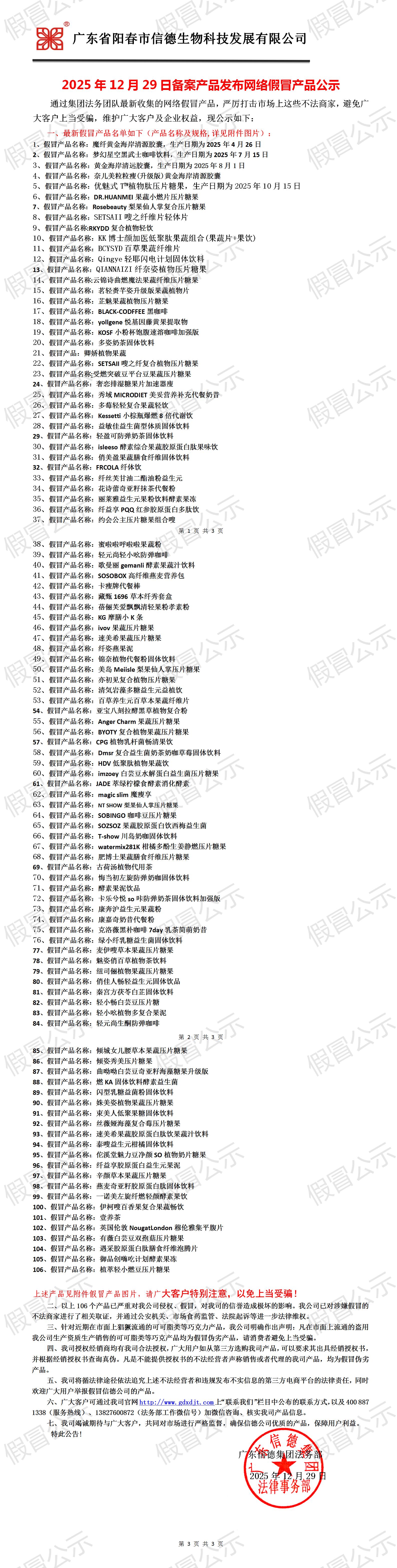 2025年12月29日備案產品發布網絡假冒產品公示!!!