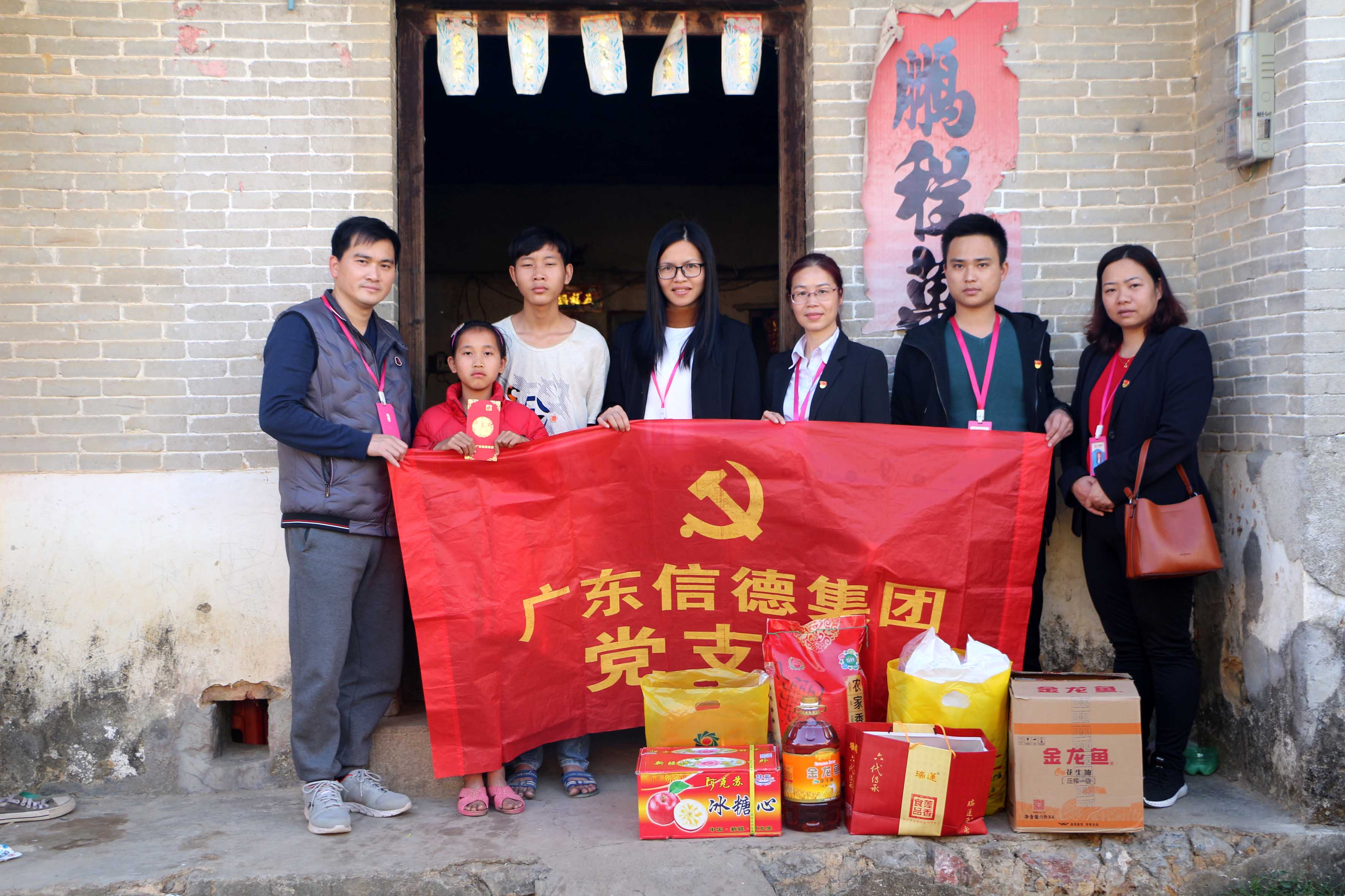 2019年春節將至,廣東信德集團不忘老鄉親,不忘貧困戶,為了讓困難群眾度過一個溫暖、祥和、幸福的春節,1月30日下午,由廣東信德集團工會主席楊翠雲和黨支部書記柯暉映帶領集團慰問小組來到九頭坡村、合崗村等開展春節慰問活動,為這裏的困難戶送去一大批衣服、大米、食用油、餅幹、慰問金等過冬物資,並奉上滿滿的愛心和誠摯的新年祝願。