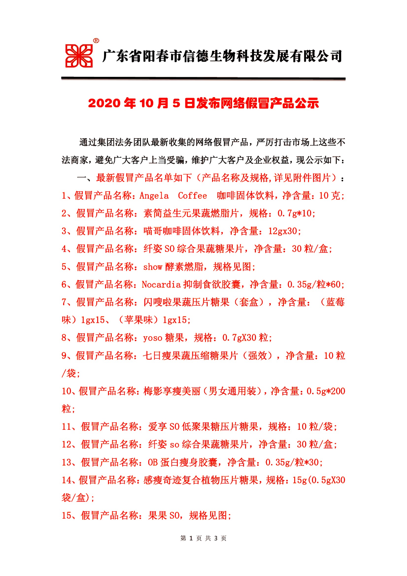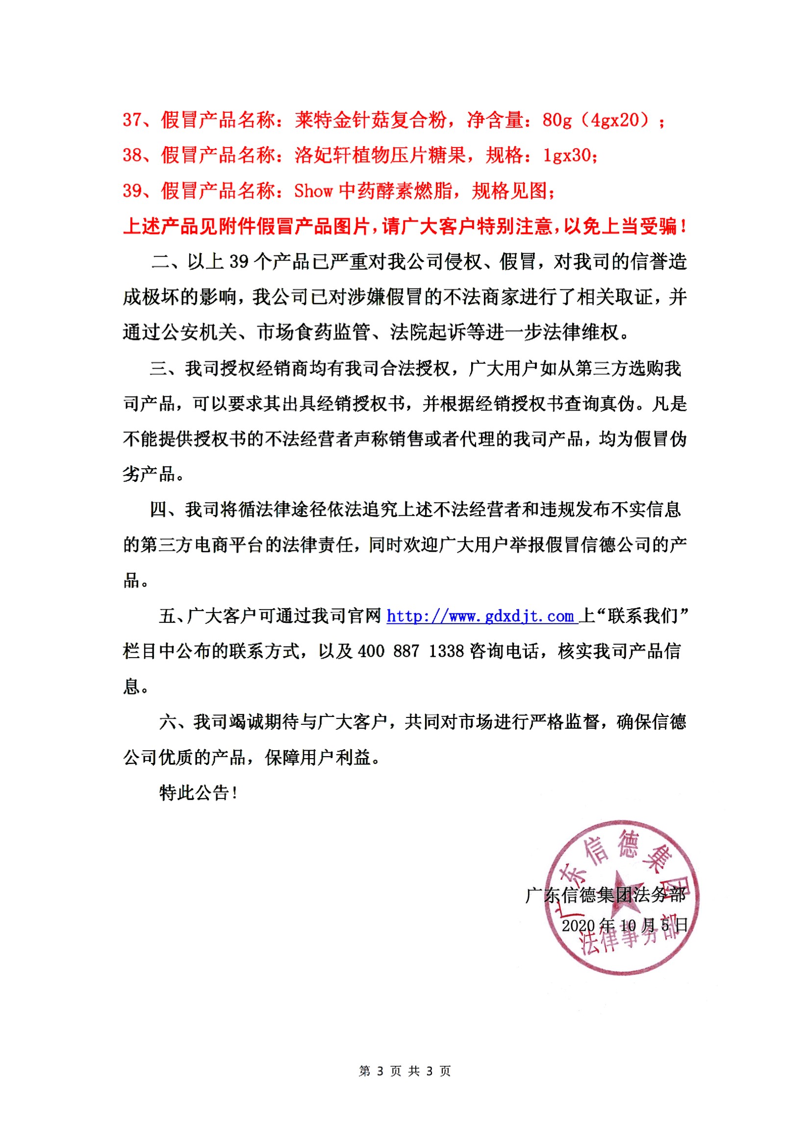 2020年10月5日發布嚴厲打擊網絡假冒產品公示!!!