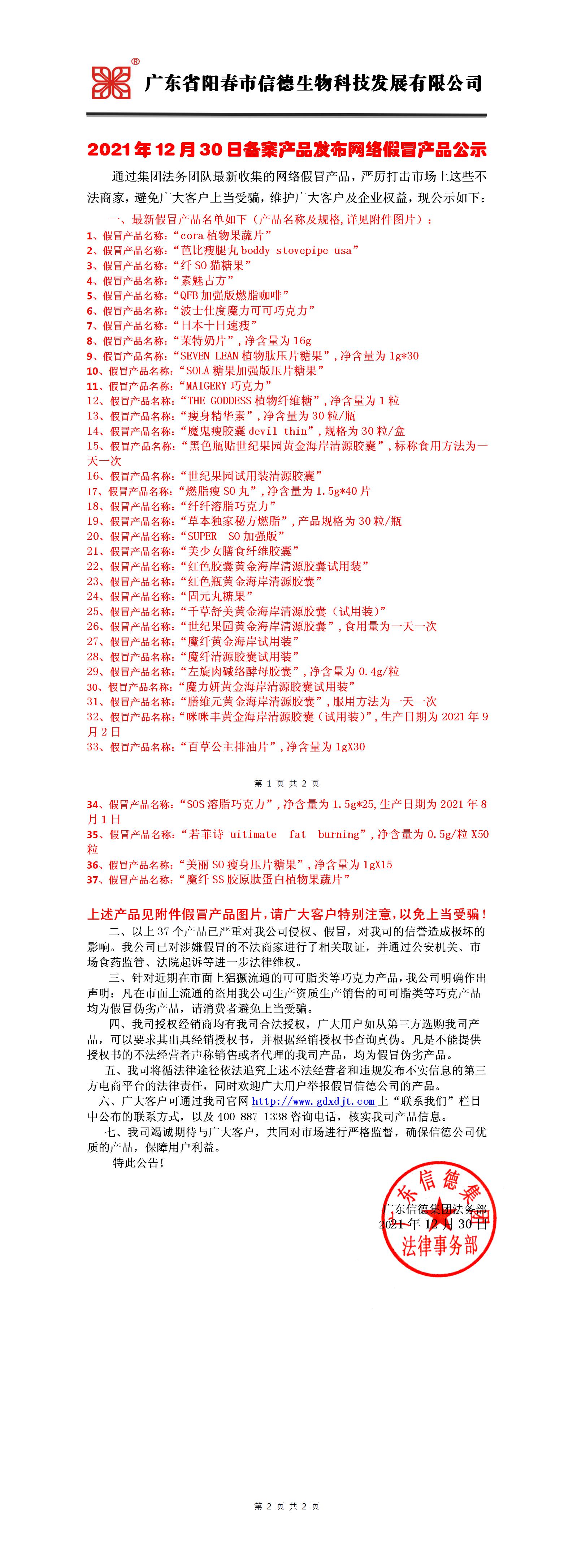 2021年12月30日備案產品發布網絡假冒產品公示!!!