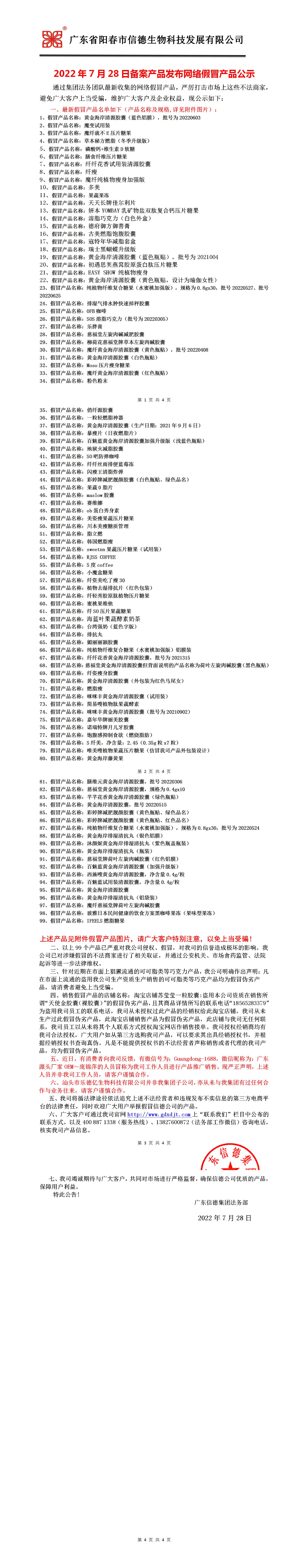 2022年7月28日備案產品發布網絡假冒產品公示!!!