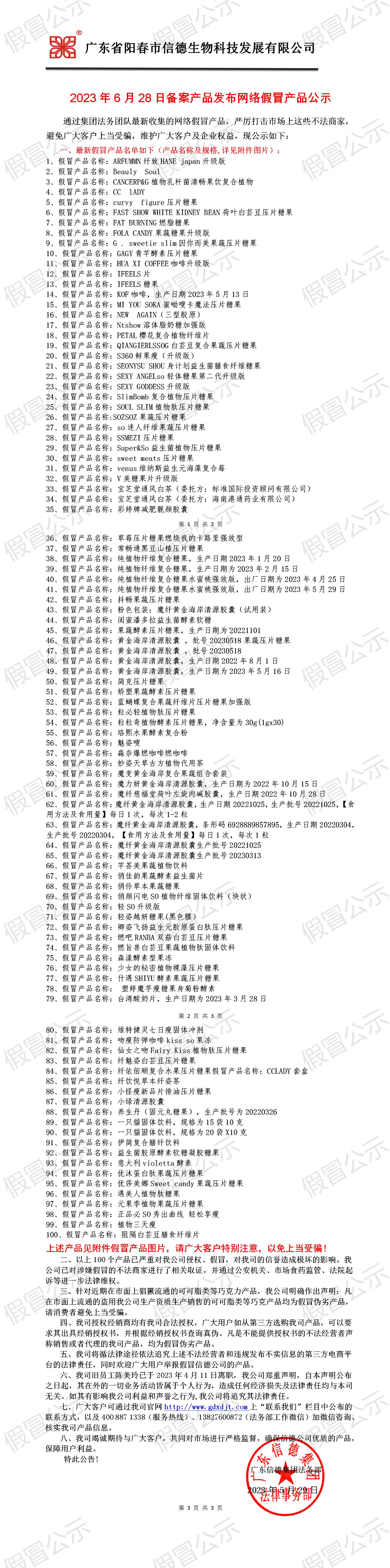 2023年6月28日備案產品發布網絡假冒產品公示!!!