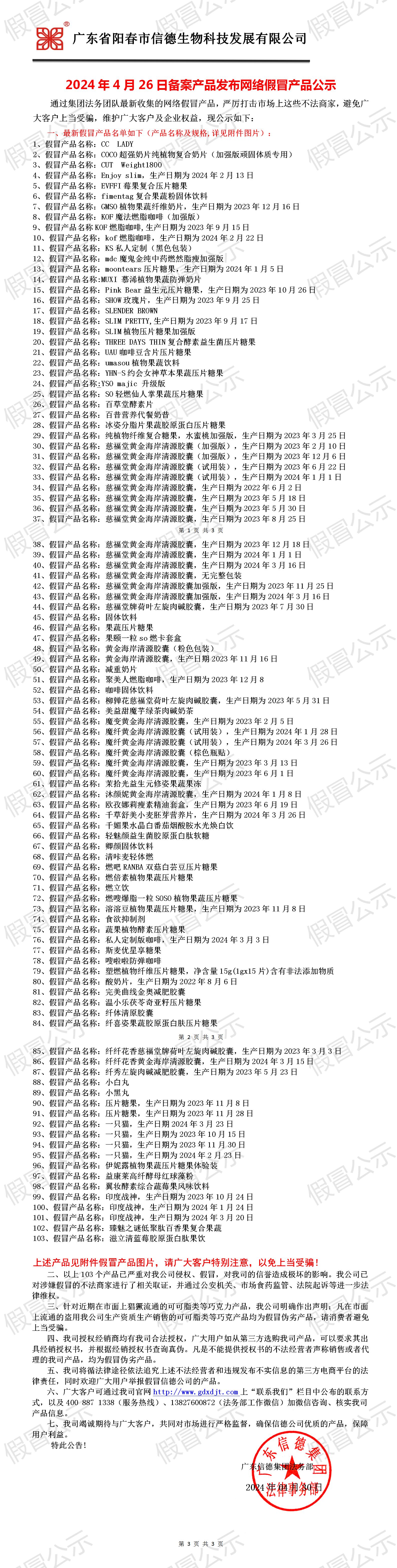 2024年4月26日備案產品發布網絡假冒產品公示!!!