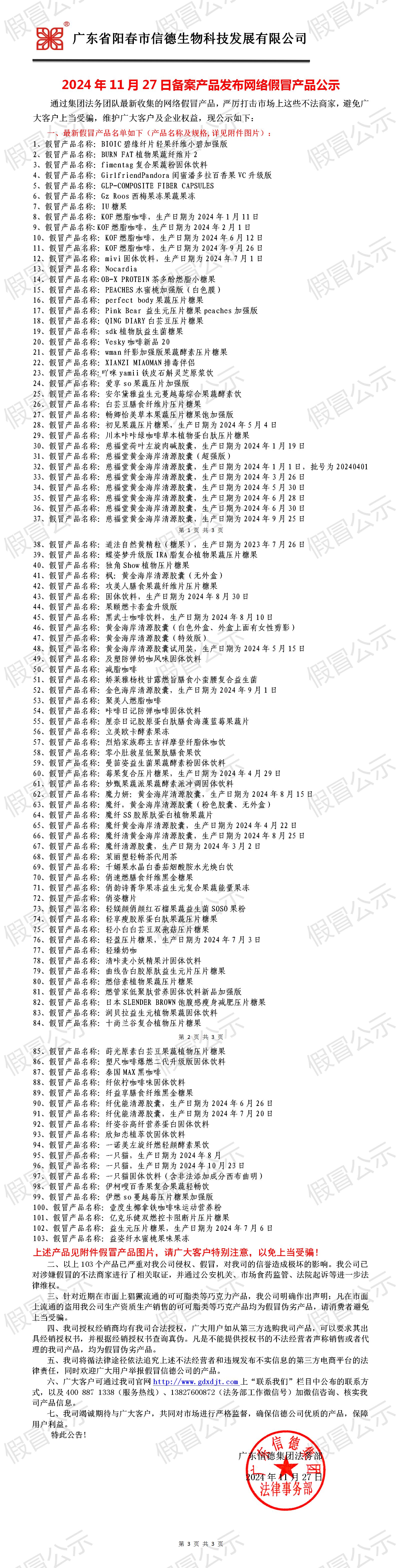 2024年11月27日備案產品發布網絡假冒產品公示!!!