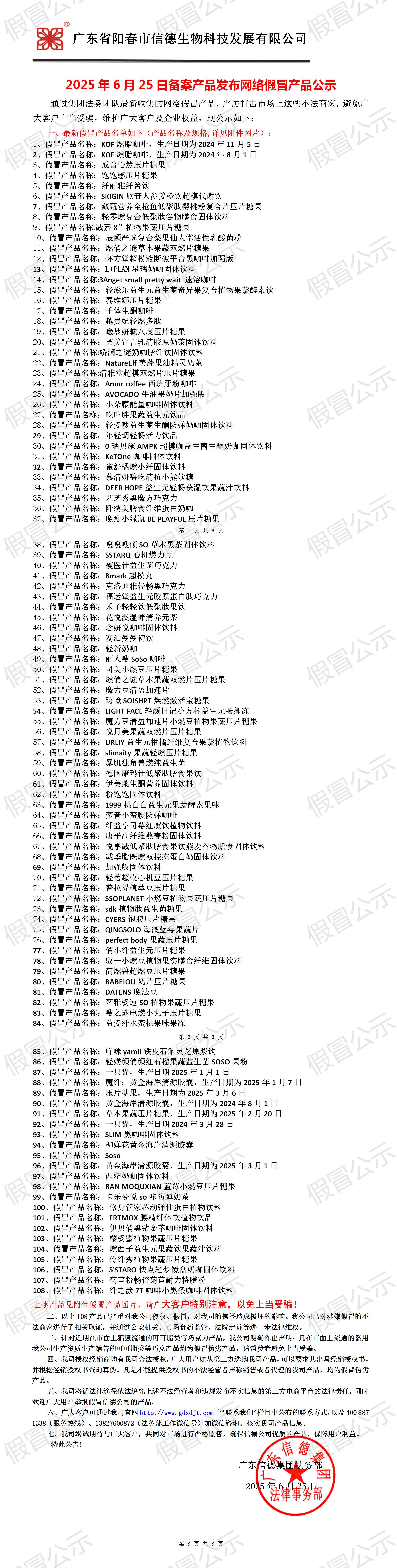 2025年6月25日備案產品發布網絡假冒產品公示!!!