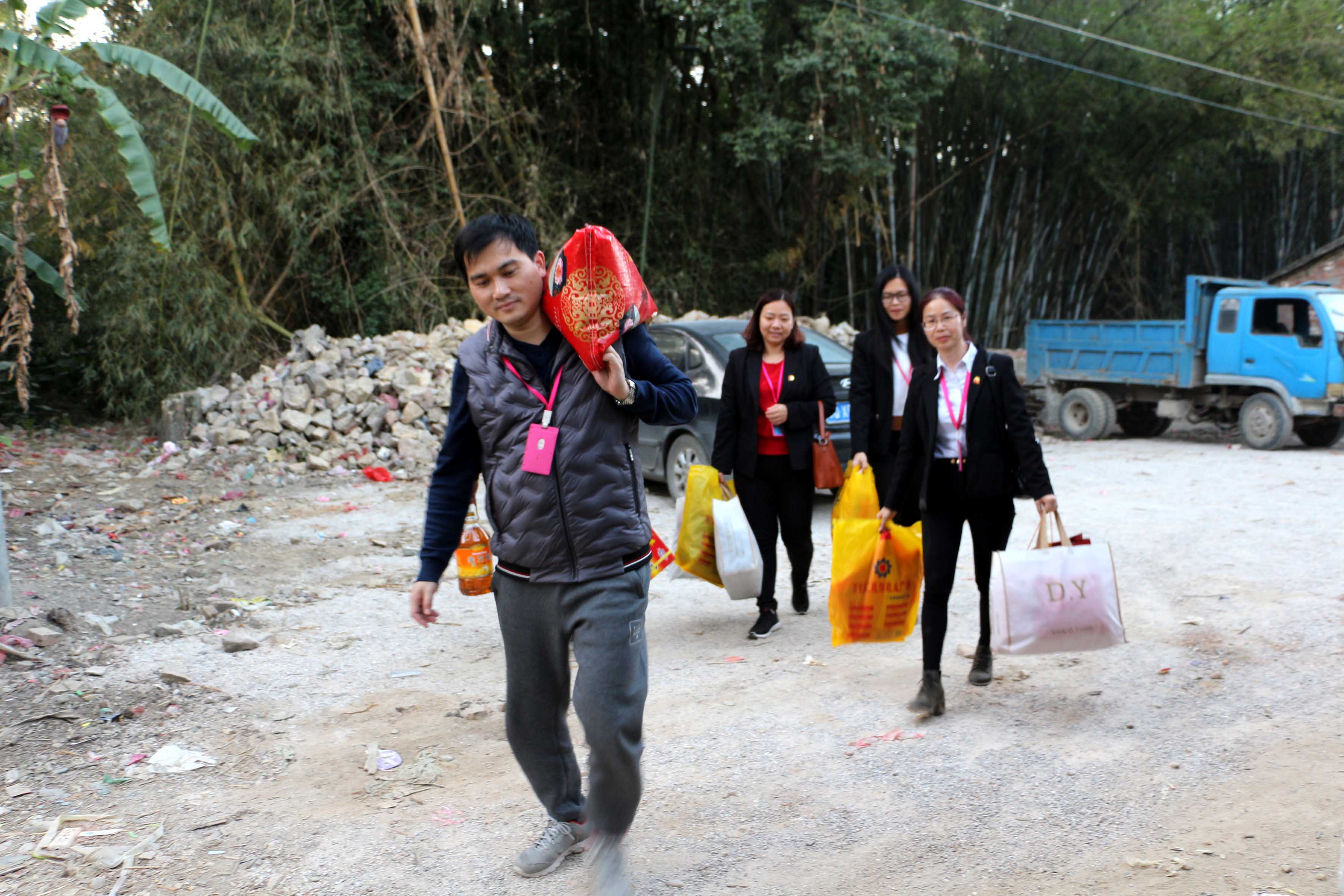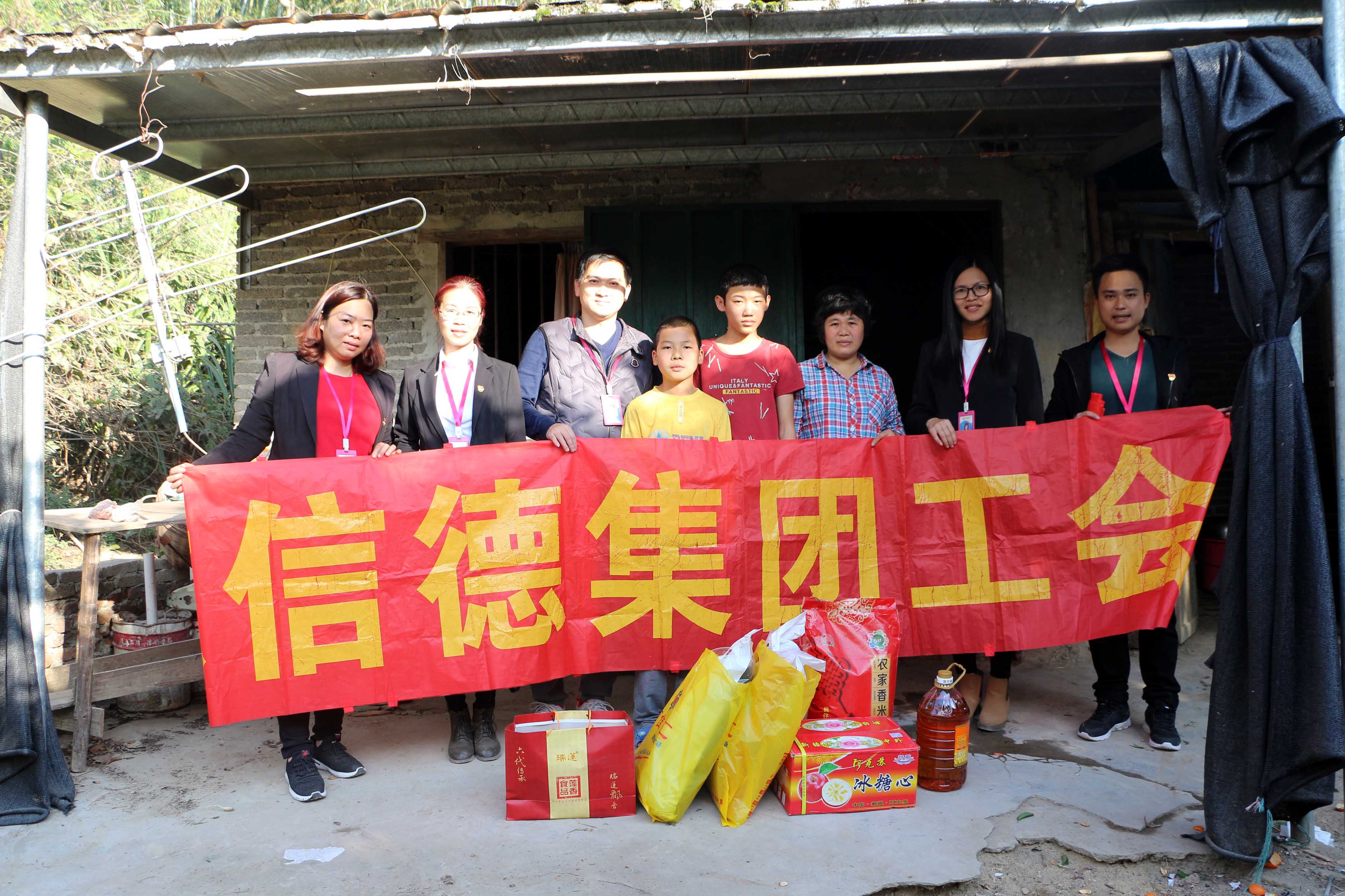 2019年春節將至,廣東信德集團不忘老鄉親,不忘貧困戶,為了讓困難群眾度過一個溫暖、祥和、幸福的春節,1月30日下午,由廣東信德集團工會主席楊翠雲和黨支部書記柯暉映帶領集團慰問小組來到九頭坡村、合崗村等開展春節慰問活動,為這裏的困難戶送去一大批衣服、大米、食用油、餅幹、慰問金等過冬物資,並奉上滿滿的愛心和誠摯的新年祝願。