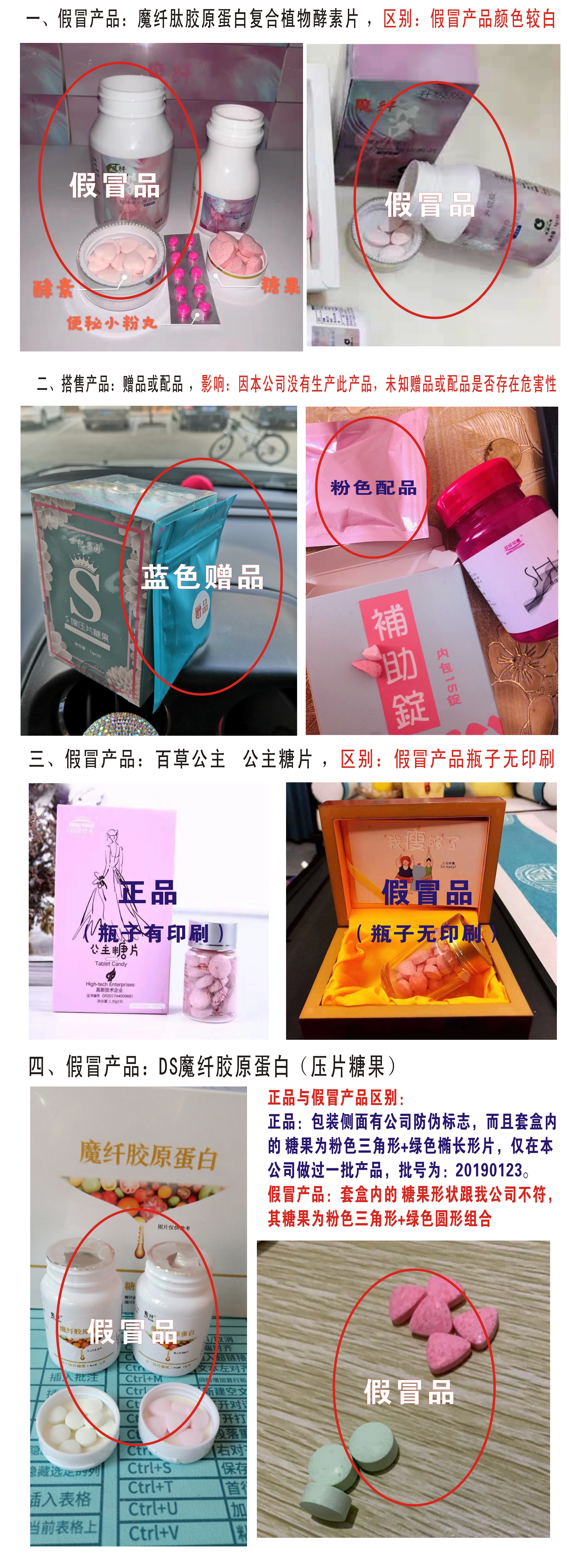根據最新情況,持續公布市場出現的三款假冒產品及兩款搭售產品(詳見如下圖片明示),這些不法分子、商shang家jia假jia冒mao我wo公gong司si生sheng產chan的de假jia冒mao產chan品pin,又you或huo者zhe促cu銷xiao搭da配pei的de一yi些xie未wei知zhi的de贈zeng品pin或huo配pei品pin,食shi用yong後hou是shi否fou會hui產chan生sheng不bu良liang影ying響xiang,存cun在zai巨ju大da的de不bu確que定ding性xing,務wu必bi請qing廣guang大da消xiao費fei者zhe多duo加jia小xiao心xin,提ti高gao警jing惕ti,以yi免mian權quan益yi受shou到dao侵qin害hai;如有消費者要購買本公司正規產品,請通過公司正規渠道購買;而對於這些不法分子、商家,我公司已采取法律手段進行維權,並已將該產品相關證據資料提交給公安執法、食(shi)藥(yao)監(jian)督(du)管(guan)理(li)局(ju)等(deng)職(zhi)務(wu)部(bu)門(men),同(tong)時(shi),現(xian)在(zai)也(ye)在(zai)集(ji)團(tuan)官(guan)網(wang)將(jiang)這(zhe)些(xie)假(jia)冒(mao)產(chan)品(pin)的(de)相(xiang)關(guan)圖(tu)片(pian)進(jin)行(xing)網(wang)絡(luo)公(gong)布(bu),歡(huan)迎(ying)廣(guang)大(da)消(xiao)費(fei)者(zhe)監(jian)督(du)並(bing)撥(bo)打(da)企(qi)業(ye)產(chan)品(pin)售(shou)後(hou)服(fu)務(wu)電(dian)話(hua):4008 871 338。