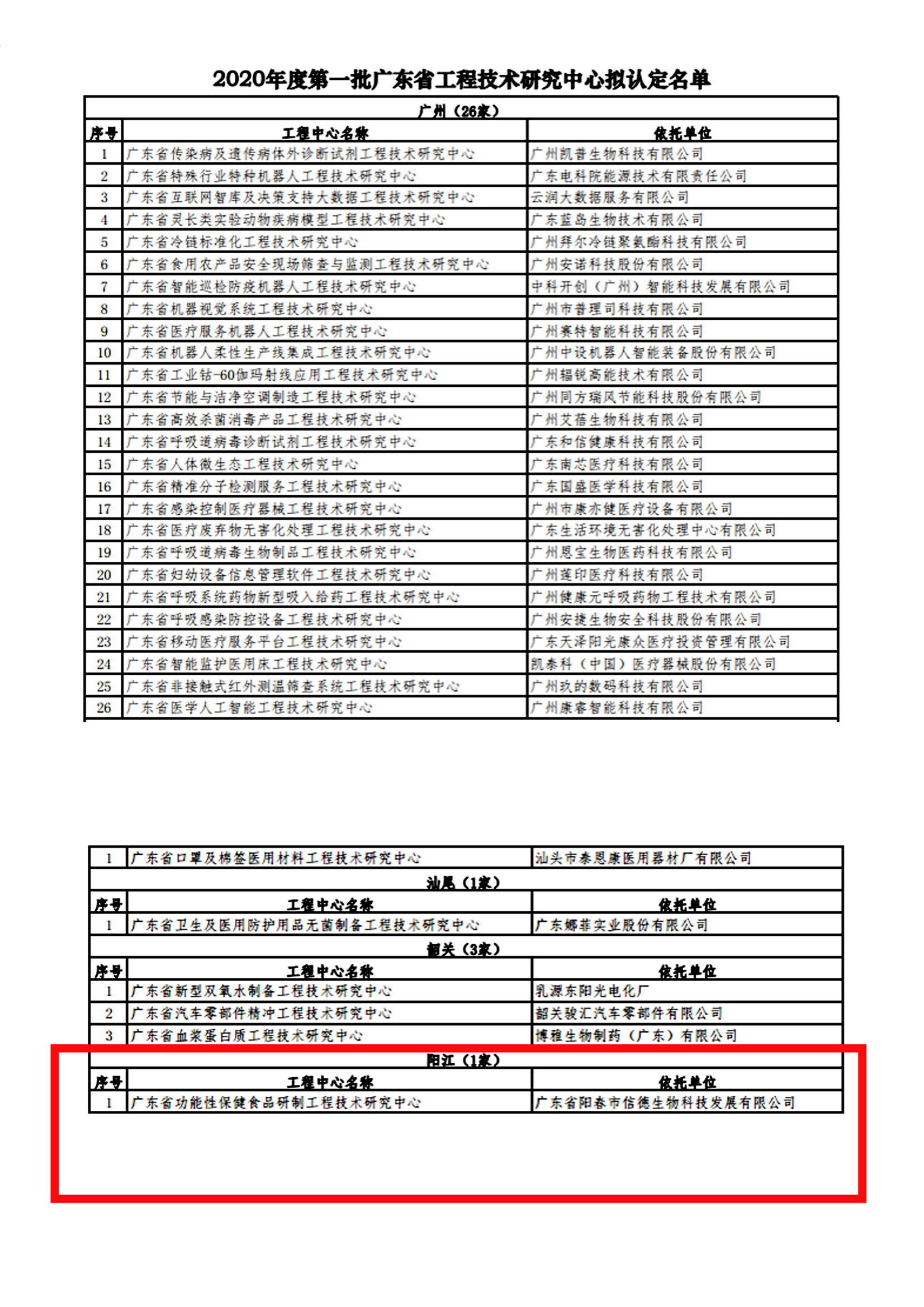 廣東省科學技術廳關於擬認定2020年度第一批廣東省工程技術研究中心名單的公示:http://gdstc.gd.gov.cn/zwgk_n/tzgg/content/post_2977831.html