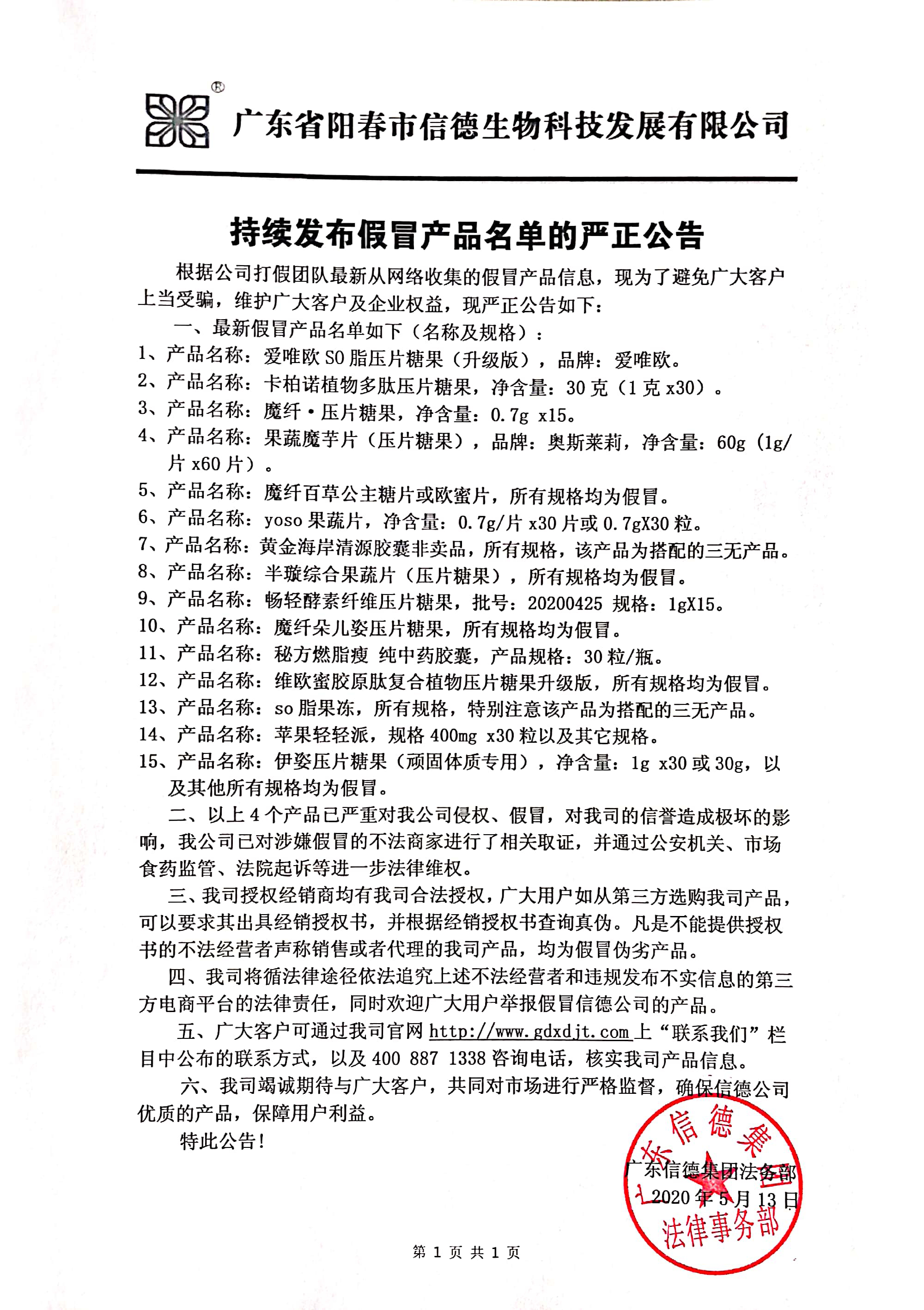 根據公司打假團隊最新從網絡收集的假冒產品信息,現為了避免廣大客戶上當受騙,維護廣大客戶及企業權益,現嚴正公告如下:
